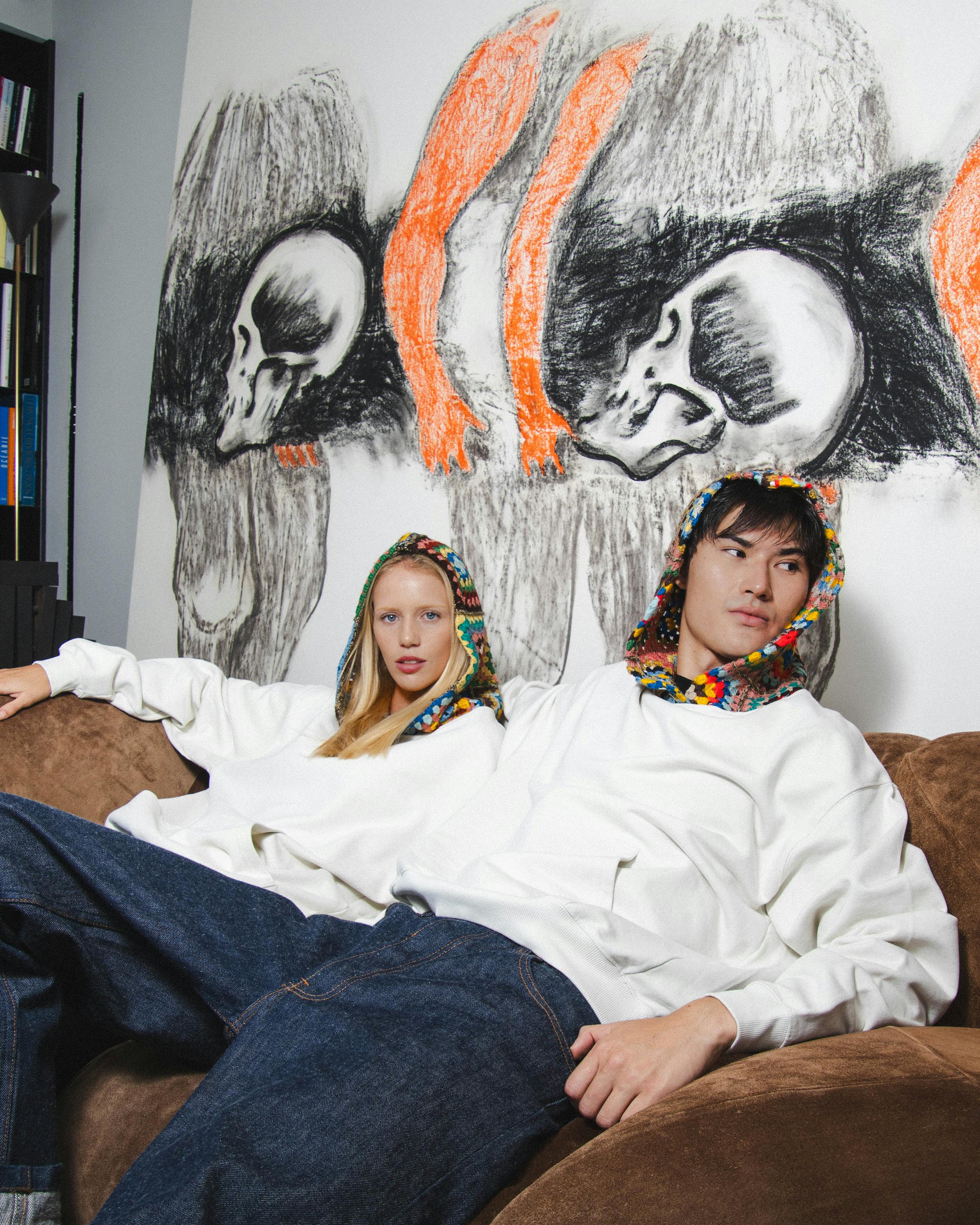 Introducing our IMAGINE Hoodie, a truly distinctive fashion statement. Handcrafted in Portugal, it features a hood made from vintage knitted materials sourced from Pakistan and Afghanistan. The remarkable trait of this collection is that each hoodie has a one-of-a-kind hood, making it exclusively yours.
