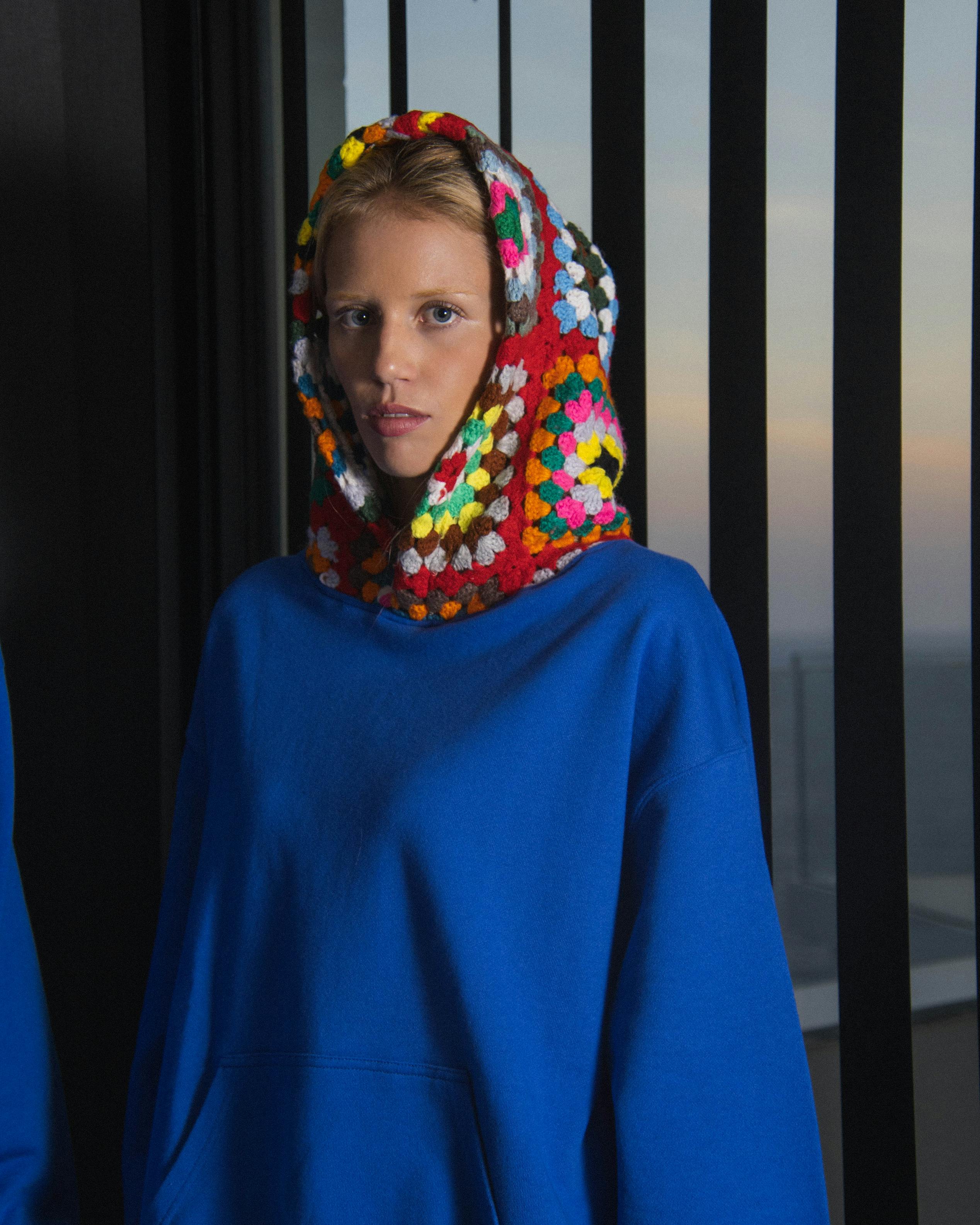 Introducing our IMAGINE Hoodie, a truly distinctive fashion statement. Handcrafted in Portugal, it features a hood made from vintage knitted materials sourced from Pakistan and Afghanistan. The remarkable trait of this collection is that each hoodie has a one-of-a-kind hood, making it exclusively yours.